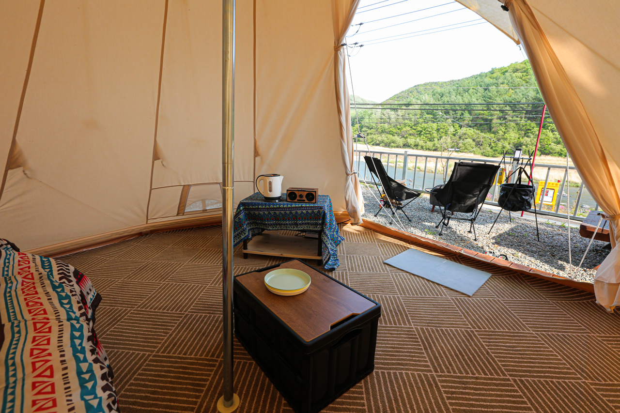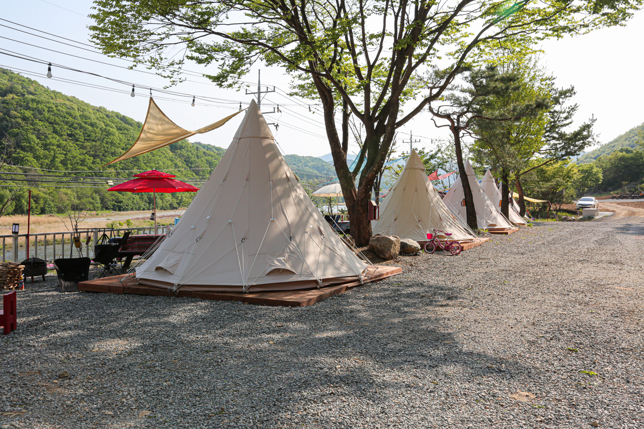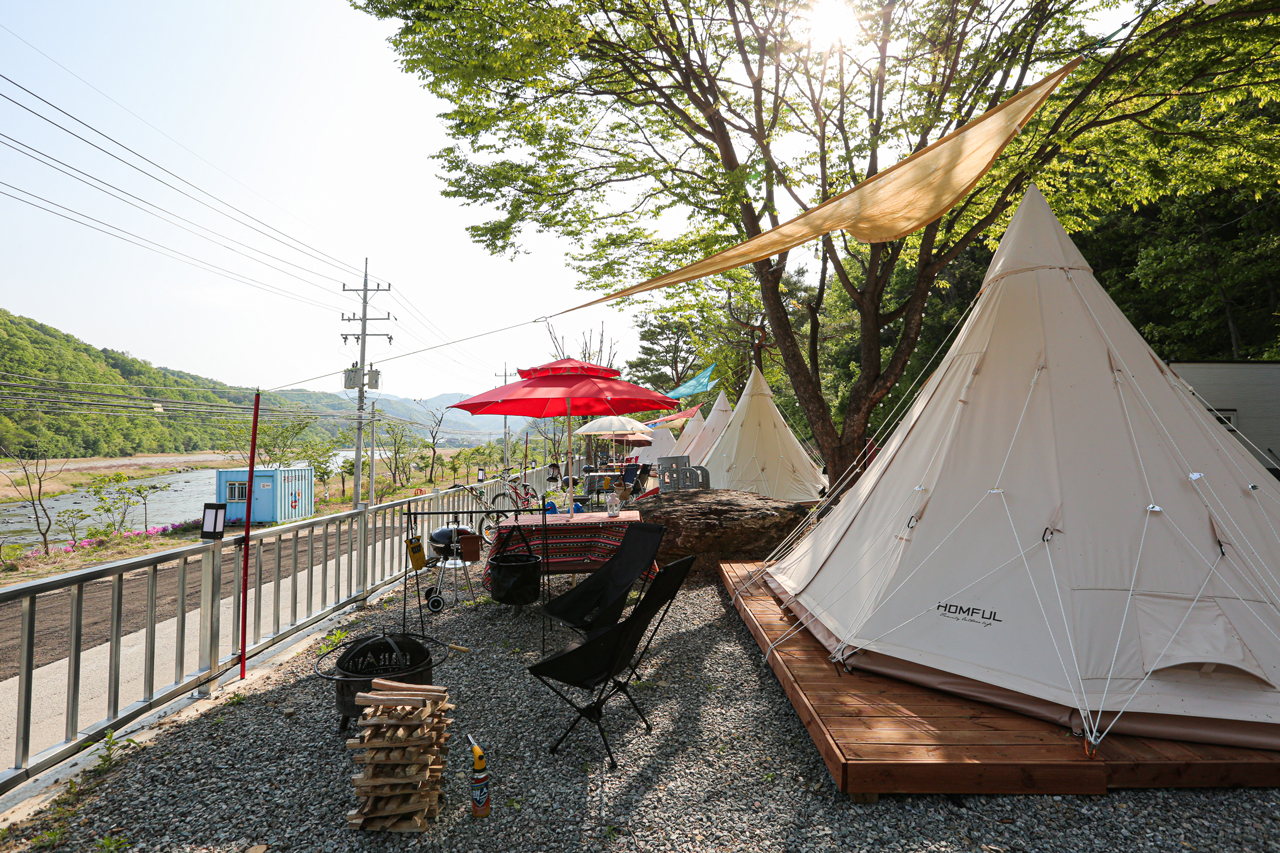 홍천강을 바라보며 캠핑을 즐기실 수 있습니다.